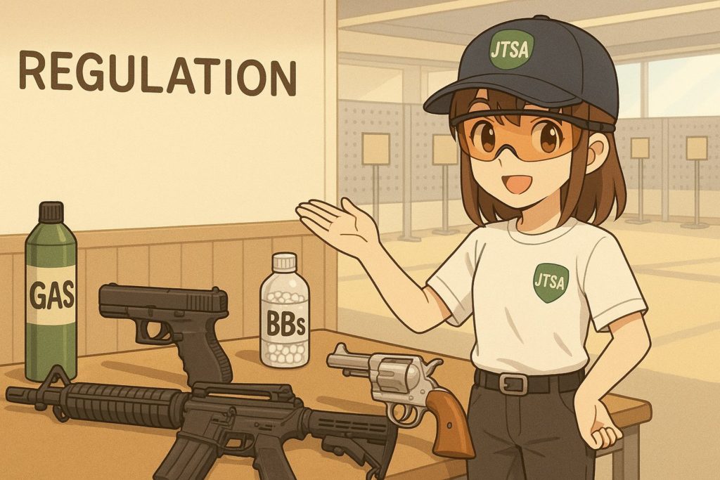本競技に使用されるエアソフトガンおよび関連機材は、日本国内の安全基準に適合した製品に・限り使用を認める。