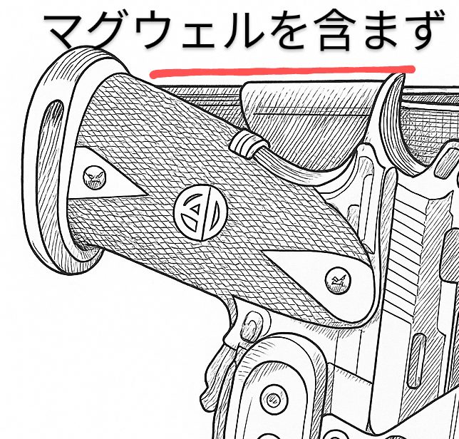 「グリップ」とは、出荷時に装着されていた純正状態のグリップを指す。後付けパーツ(例:サムレスト、サポートパーツ、マグウェル、パテ等)は装着してもよいが、グリップの位置判定には含めない。